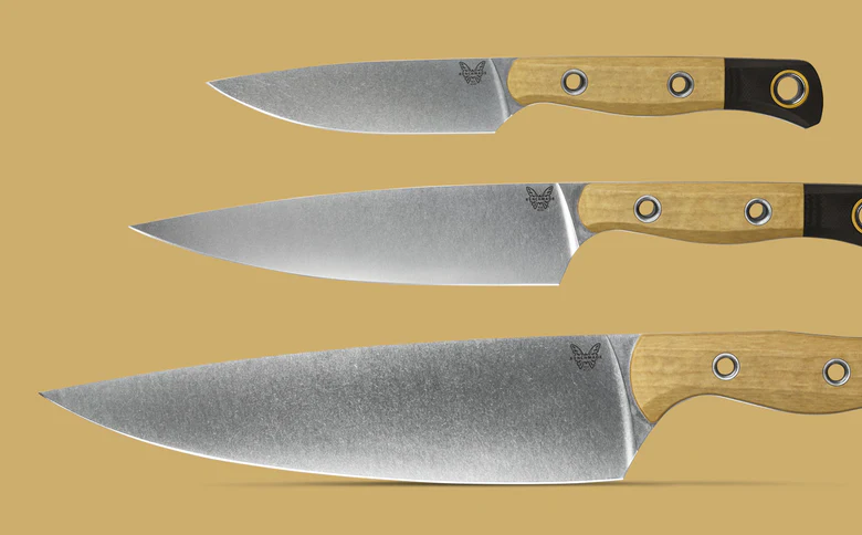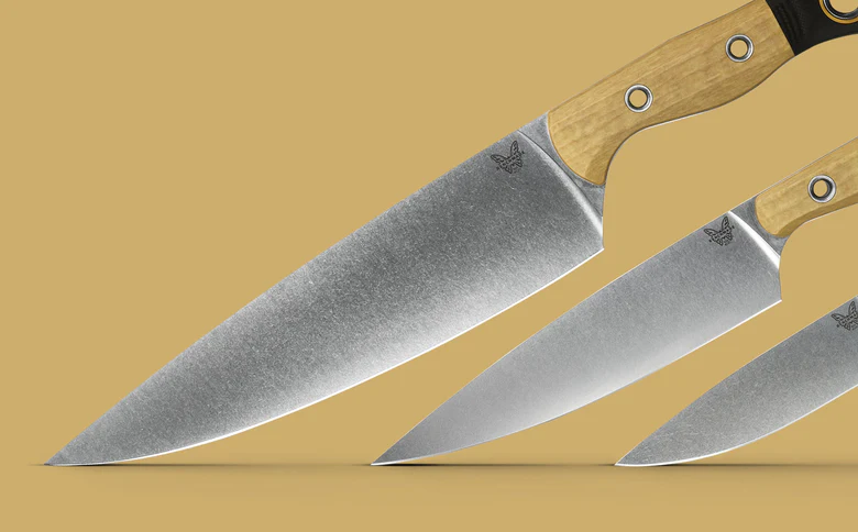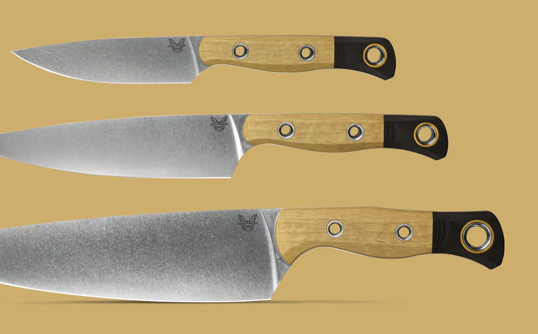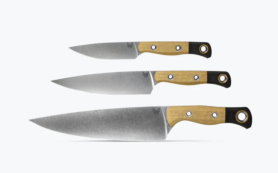 The 3 Piece Set promises a precise cut, a unique aesthetic and a sharp edge thanks to Benchmade’s proprietary SelectEdge® technology. Complete with an 8” Chef Knife for thin slices of vegetables, a 6” Utility Knife with a shorter blade and small tip for trimming, and a 4” Paring Knife used for cutting and peeling fruits and veggies, and trimming excess fat with ease. Over time, Richlite®, a paper composite material, will develop a natural patina over time, altering the original color of the material. “Patina” is a natural occurrence in the product that can either darken or lighten depending on exposure to light.